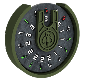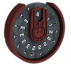 En principio no tiene mala pinta, lo de ver todas las maniobras está muy bien y el diseño imperial mola un montón. Habrá que ver exactamente su funcionamiento, si el selector está fijo y hay que girar el dial de carton en sí como en Armada (con lo cual no adelantamos mucho ya que el cartón se va a seguir deteriorando y vamos a seguir con el mismo problema de que se puedan llegar a quedar marcadas las maniobras), o si lo que gira solamente es el selector. Desafortunadamente no tengo mucha fé en que sea esta última opción, ya que la hendidura en la parte superior hace que estos diales sean exactamente como los de Armada…