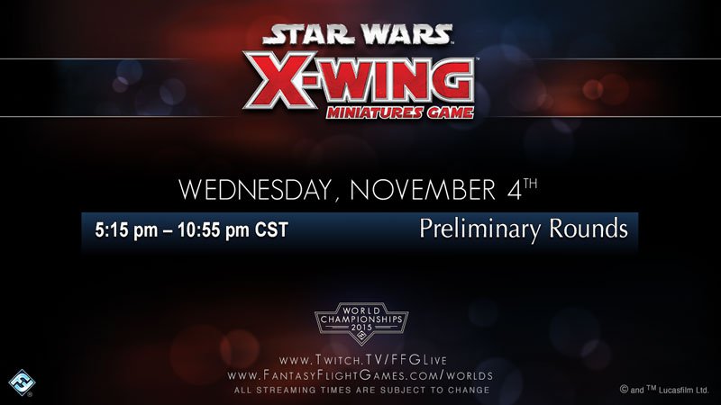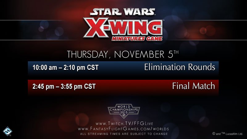 Hoy comienzan los mundiales de Fantasy Flight Games, y durante hoy y mañana se llevarán a cabo las partidas de X-Wing. Por fin vamos a poder ver como se ha establecido el metajuego después del duro impacto provocado por las Torretas Laser Dobles, horarios y streaming después del salto!